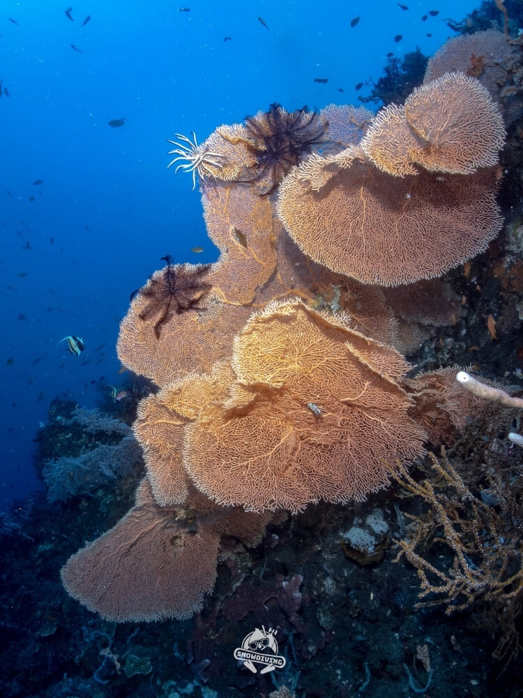 就直接切入主題來到知名潛點自由號沈船,是一艘美國貨船,在二戰期間被日本魚雷擊中,擱淺在土蘭奔的岸邊。1963年阿貢火山噴發,將擱淺在岸邊的船體推入海中,形成現在的沈船, 距離岸邊很近約30-40米,水深從3米到30米不等,適合不同等級的潛水員。 沈船上覆蓋著各種生機勃勃的珊瑚,還能見到不同的小魚群,運氣好的話,可能會遇到巨型蘇眉魚、超大梭魚等等……