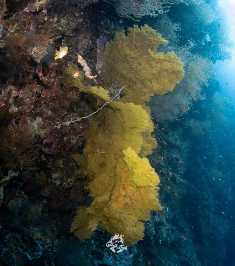 斷層位於土蘭奔灣右方,是由岩漿形成的峭壁,深度從3米到70米,有多種不同潛水路線以潛水客程度而定,覆蓋不同種類的珊瑚,最有看頭的正是超巨大型海扇和桶狀海綿,水中生態其實非常豐富,可以看到十字鬼龍、玻璃魚群及不同種類的珊瑚礁魚群,可惜的是這次能見度沒有很好,所以看不太清楚捷克魚群,只有模糊的影子……