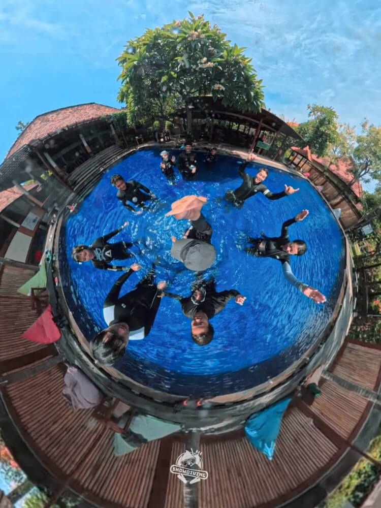 而因潛點都在潛店附近,每趟潛水的中間都會回潛店休息,Ice tea or Hot tea ? 水面休息總會有飲料跟西瓜可以享用,不用脫防寒衣即可在泳池戲水,多麼的愜意啊~