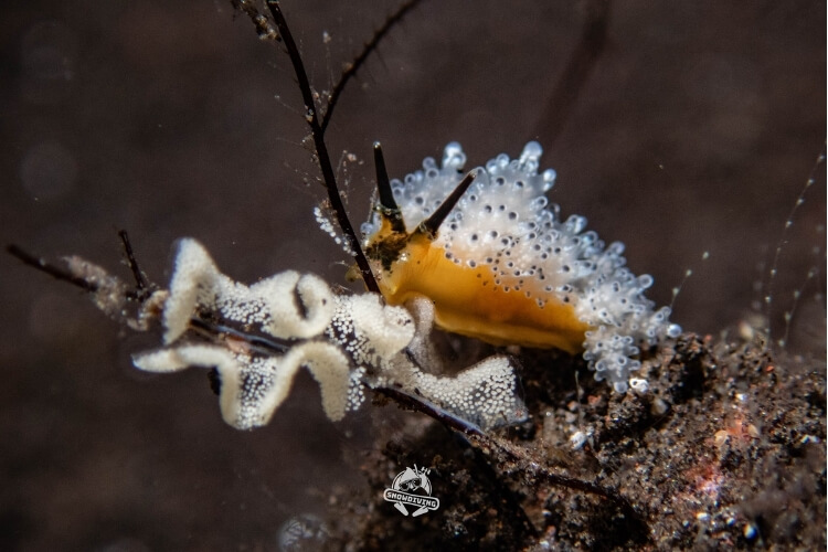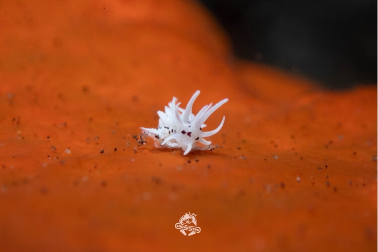 海蛞蝓組的分享:擁有鷹眼的導潛們,找了跟白天完全不同品種的海蛞蝓,有了夜間的加持,照片背景非常乾淨,有時的畫面就很像夜間下雪感,十分的。
