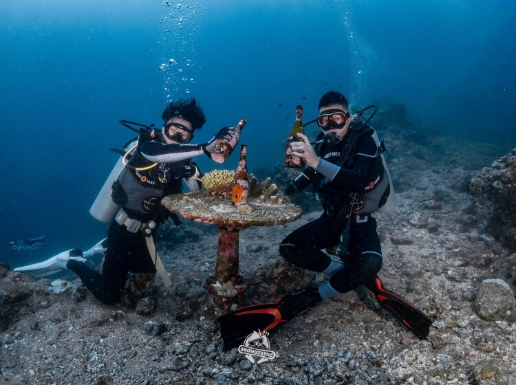 這個潛點的玫瑰珊瑚特別壯觀,硬珊瑚們看起來也非常有活力,還有石桌跟酒杯可以給大家拍照打卡,也是個好玩的潛點~