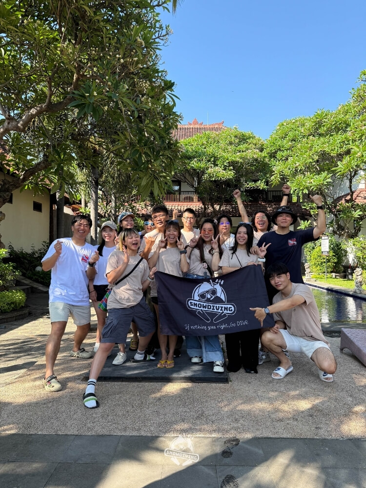 第一天是交通日,我們先從桃園 TPE 搭乘飛機至峇里島 DPS 機場,落地出境後馬上就有潛店的工作人員舉著牌子接待,幫忙提攜行李至車上,搭乘潛店安排的車子,大約 2.5-3.5 小時的車程,以為會很難熬的車程其實很快就到了~因為車上有 KTV 可以唱歌~我們就一路嗨到入住的地方 Liberty Dive Resort。